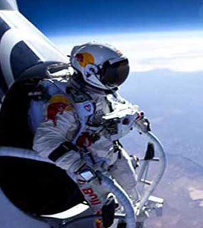 Austrian Daredevil Felix Baumgartner is jumping from 23 miles up. SPACE. He’s jumping from space. Reports are that his mom wept right before the launch.