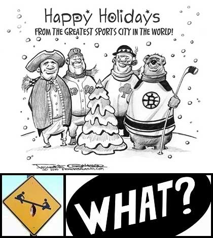 This holiday edition of What ha… happened is certainly full of Boston homerism, but that’s not what is most disturbing about the four Boston sports icons wishing us a happy holidays.