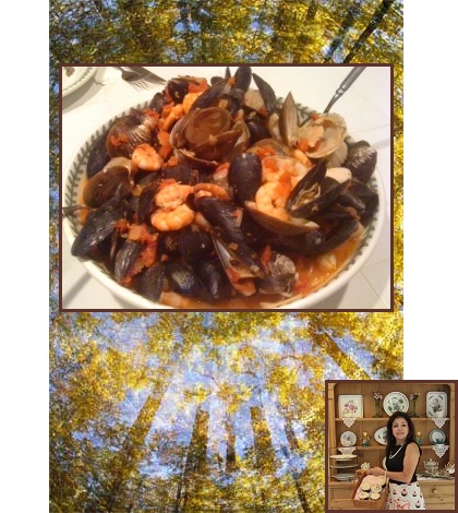 To make this dish really nice, serve with fresh made pasta. You can add any variety of shell fish and fish to this dish, depending on what is available at the market. If you like calamari, add it to the stew in place of scallops or white fish.