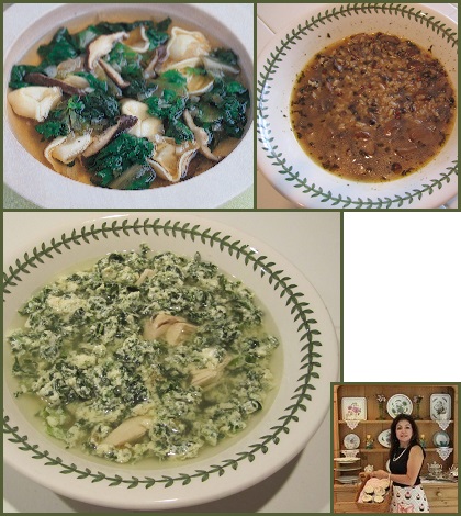 Baby Bela Garlic Mushroom soup with Brown Rice, Stracciatella, and Tortellini and Escarole soup are three of my family favorites; delicious and easy soup recipes for a snowy day or any day!