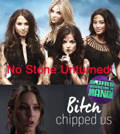I’m still not convinced that Mona isn’t A. I think that Mona and Charles are working together! The one thing we know for sure is that A chipped the girls and put the receiver in Leslie Stone’s lab! Mona tries to distance herself from Leslie by calling her crazy but let’s face it we can’t trust her!