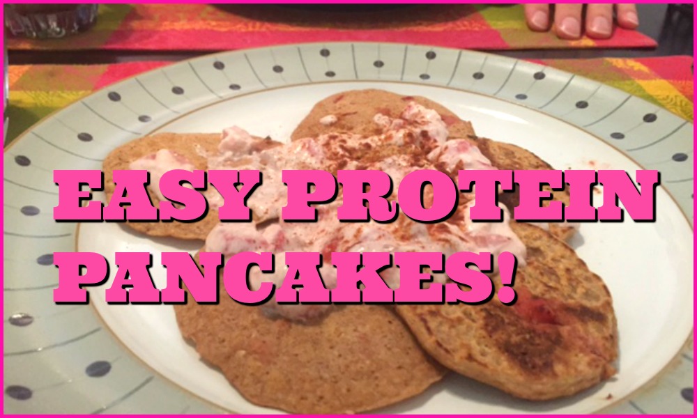 Protein pancakes are even easier to make than regular pancakes! Sometimes I put a little agave on top of the pancakes when they’re done. Sometimes I use some frozen berries and melt them down, then mix them with Greek yogurt and put the mix on top of the pancakes!