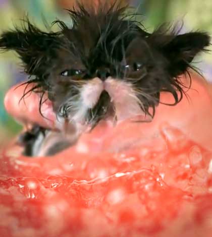 This is a show Persian kitten getting bathed in slow motion. The best cat video on the planet.