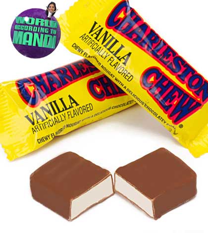 Charleston Chew is my all time favorite candy! Yum! Chocolate covered vanilla taffy. How can you go wrong? I used to get so excited when I got these little minis when I went Trick or Treating. Try throwing them in the freezer. It will blow your mind!