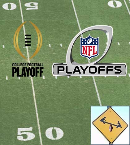 While the games on the field are super exciting, with Hail Mary endings and upsets abound, the overall outcome somehow seems less special. I don’t know why exactly. It’s almost as if the playoff now gives a buffer zone that didn’t used to exist. The losses by Oregon and Alabama and Oklahoma etc. the week before seemed demoralizing to those fan bases. But then UCLA lost (and lost again) and Auburn lost and TCU lost etc. and now OU and Bama and the Sooners aren’t out of anything.
