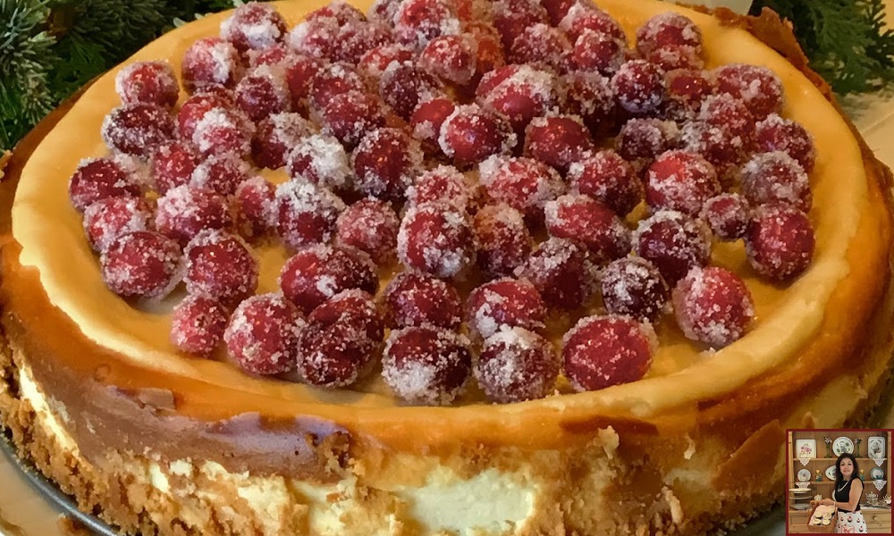 Loosen sides of pan with a spatula. Remove sides of springform pan. Top surface of cooled cheesecake with either Pineapple Glaze or Sugared Cranberries and refrigerate for 3 hours or overnight.